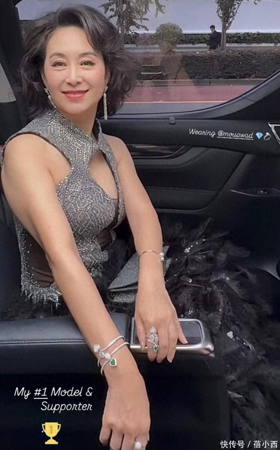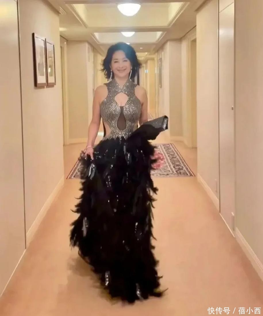 何超琼身上的披肩不仅薄如纸,而且面料光是看着就挺光滑,搭在手臂上只会感受到柔软,不扎肤。身上连衣裙所融入的颜色主要是红色、黑色,前者所占面料最多。在裙摆处,能看到红色竖纹,然后有黑色薄纱设计,可隐约看到腿型和肌肤。当年纪过了50岁,就算再爱美,也尽量穿跟低一些的鞋子,脚和小腿都不易累。