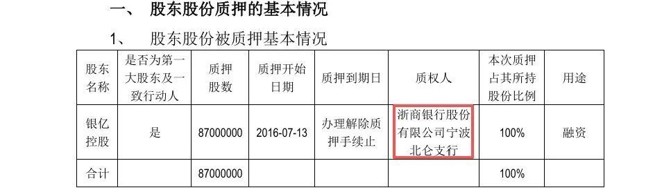 首先是标的股份的质押争议。银亿控股持有的8700万股河化股份长期处于质押状态,早在2016年7月,银亿控股所持8700万股河化股份便已质押给浙商银行股份有限公司宁波北仑支行,且该质押状态持续至今。